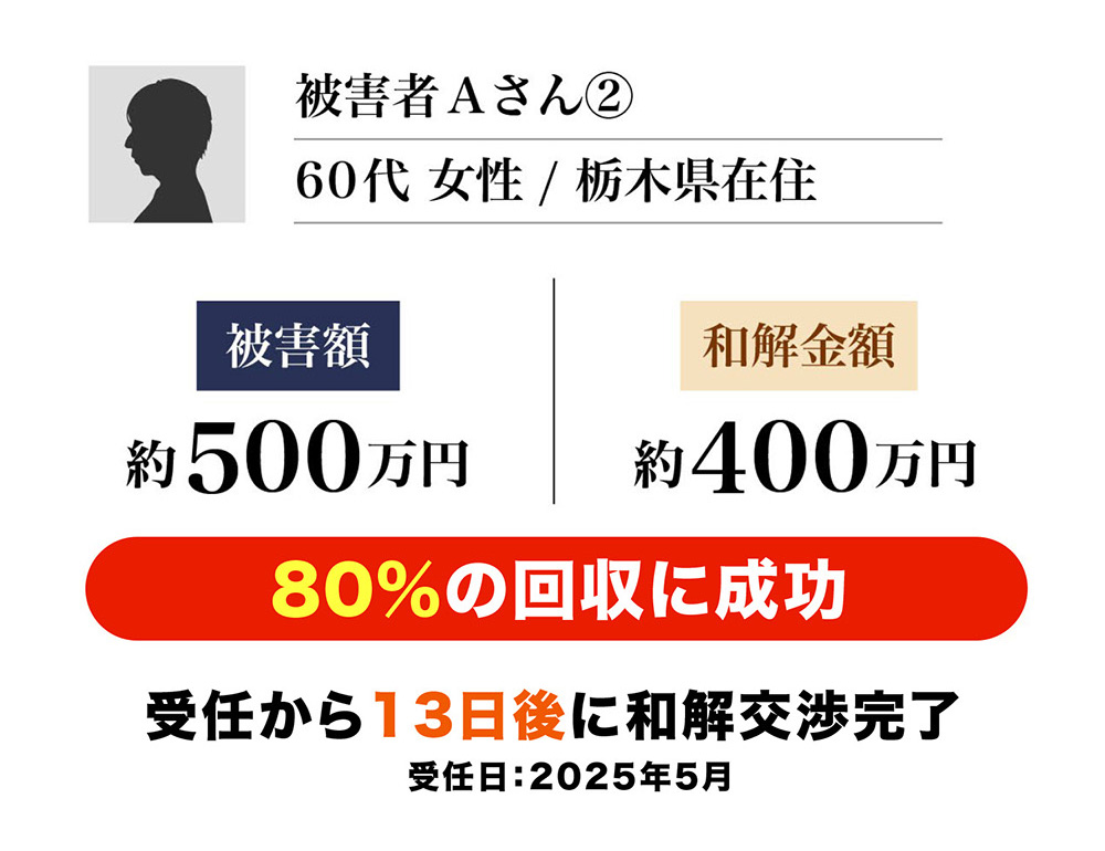 A相談、着手金0円なので、返金された金額から成功報酬をいただきます。